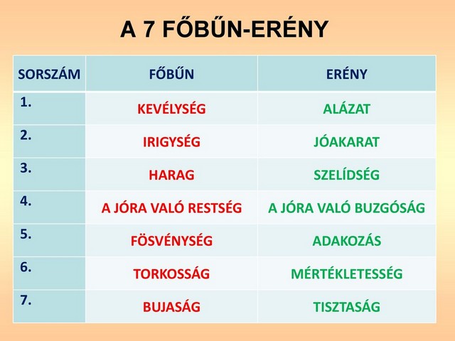 Részletesen nézzük át tehát az erényeket, a hét főbűnnel szemben,